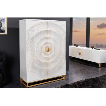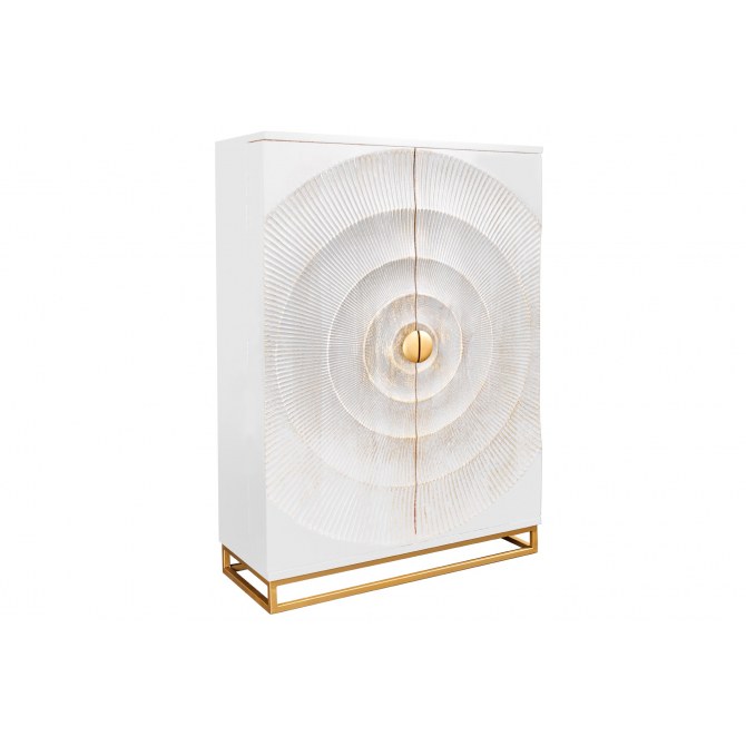 Ręcznie rzeźbiony front 3D w kolorze bieli z subtelnymi, złotymi akcentami.