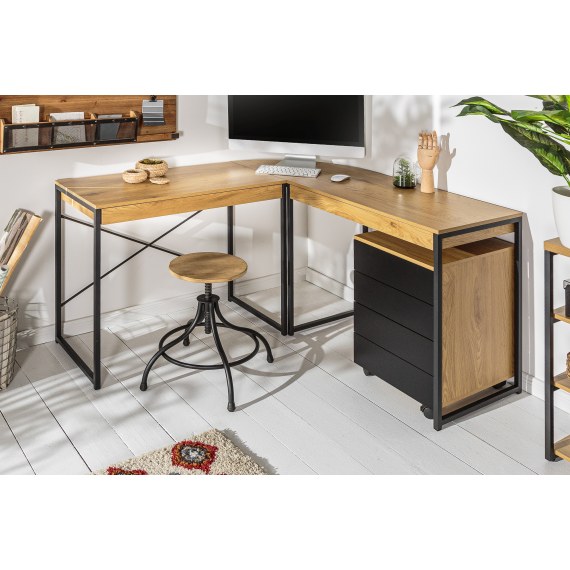 Jasny blat i ciemna metalowa rama tworzą wspaniały kontrast.