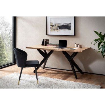 Biurko WOHNLING 180x90 cm to połączenie naturalnego piękna drewna z nowoczesną, industrialną formą. Świetnie sprawdzi się w nowoczesnych przestrzeniach biurowych, pracowniach i domowych gabinetach. Ręcznie wykonane, trwałe i wyjątkowe – mebel, który przyciąga wzrok i zapewnia komfort pracy.