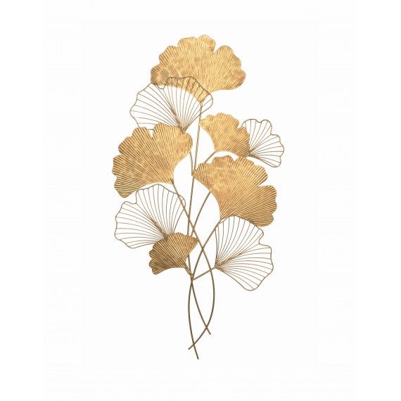 Duża dekoracja ścienna składa się z kilku złotych liści miłorzębu.