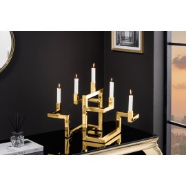 Świecznik ABSTRACT to elegancki i nowoczesny element dekoracyjny, który zachwyca artystycznym designem i luksusowym złotym wykończeniem. Dzięki pięciu ramionom na świece stanie się centralnym punktem każdej aranżacji, wprowadzając ciepło i wyrafinowanie.