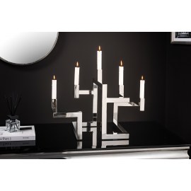 Świecznik ABSTRACT to wyrafinowany element dekoracyjny, który łączy artystyczny design z nowoczesną elegancją. Dzięki pięciu ramionom na świece i srebrnemu wykończeniu, świecznik ten wprowadza do wnętrza blask i wyjątkowy charakter.