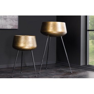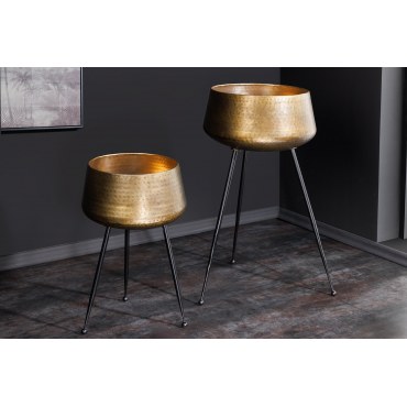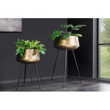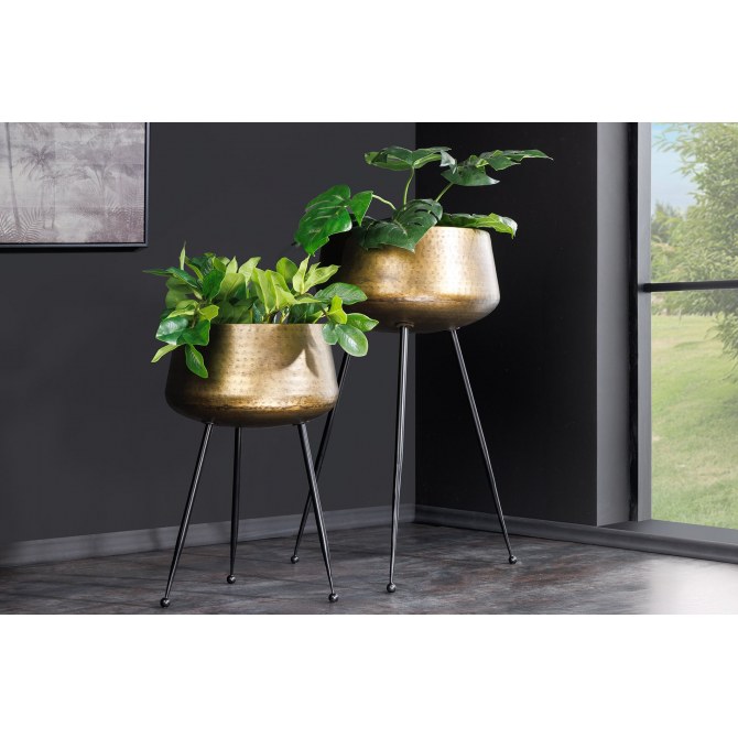 Zestaw FLOWERS to stylowe osłonki na doniczki, które łączą klasyczną elegancję z nowoczesnym designem. Wykonane z metalu o młotkowanej fakturze w kolorze złotym, osadzone na czarnych, minimalistycznych ramach, stanowią idealny akcent dekoracyjny do każdego wnętrza. Doskonale komponują się zarówno z nowoczesnymi, jak i glamour czy industrialnymi aranżacjami.