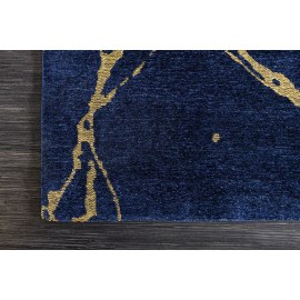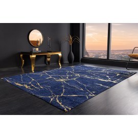 Dywan MARBLE to wyraz elegancji i luksusu w Twoim wnętrzu. Jego marmurowy wzór w odcieniach głębokiego niebieskiego i złota tworzy harmonijne połączenie, które nada każdemu pomieszczeniu wyjątkowy charakter.