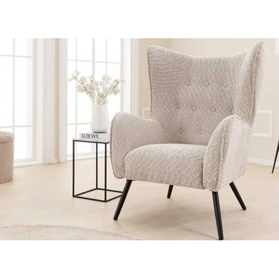 Stylowy fotel WING AMSTERDAM to idealne połączenie nowoczesnego designu z komfortem użytkowania. Wyprofilowane siedzisko w eleganckim odcieniu greige, wykonane z miękkiej tkaniny bouclé, zapewnia wygodę i wprowadza przytulną atmosferę do każdego wnętrza. Stabilne nogi z czarnego metalu dodają meblowi minimalistycznego, industrialnego charakteru, który świetnie komponuje się z różnymi stylami aranżacji.