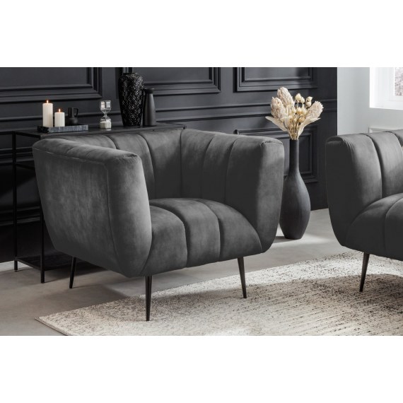 Fotel NOBLESSE to doskonałe połączenie klasycznej elegancji i nowoczesnego komfortu. Wykonany z miękkiego, welurowego materiału w szlachetnym odcieniu szarości, jest idealnym uzupełnieniem wnętrz w stylu glamour, nowoczesnym czy klasycznym.