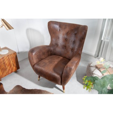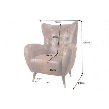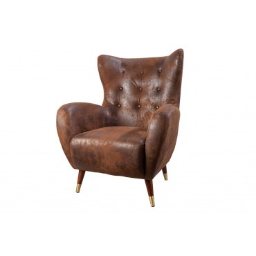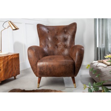 Fotel uszak Don z złotymi akcentami — Mikrofibra Antique Brown