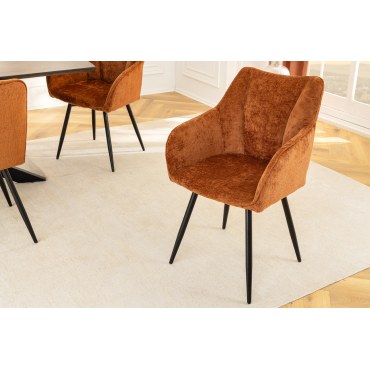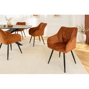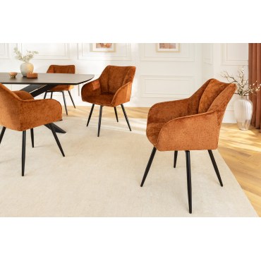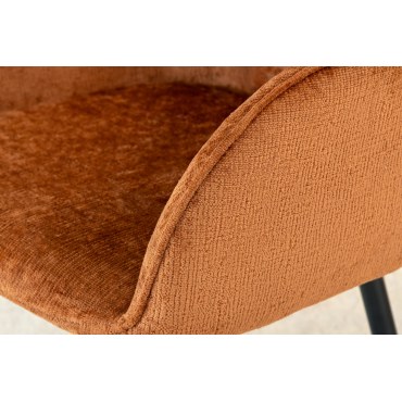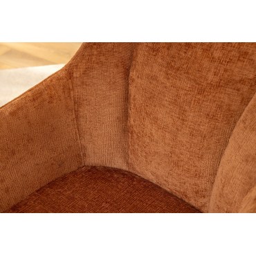 Eleganckie krzesło AVIGNON 360° łączy wygodę z designerskim stylem. Tapicerowane miękką tkaniną typu chenille w ciepłym, rdzawobrązowym odcieniu oraz ustawione na stabilnych, czarnych nogach z metalu malowanego proszkowo. Dzięki funkcji obrotu o 360° zapewnia pełną swobodę ruchu – idealne do biura, gabinetu lub przy toaletce.