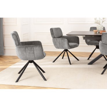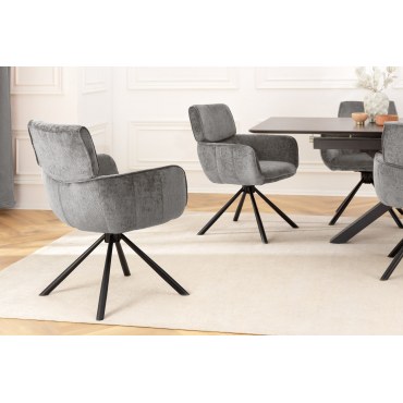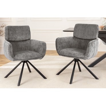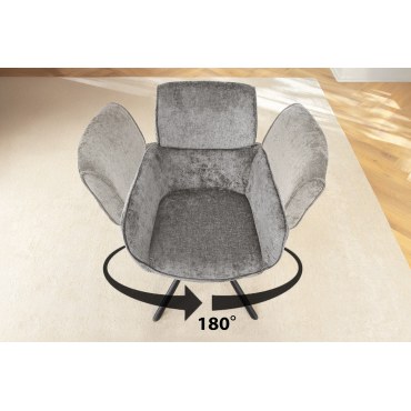 Elegancki i wygodny model – obracane krzesło UNIQUE 180° zostało tapicerowane miękkim materiałem chenille w odcieniu szarości i osadzone na solidnych, czarnych nogach z metalu. Świetnie sprawdzi się w biurze, salonie czy gabinecie — pięknie łączy styl z komfortem.