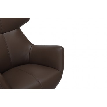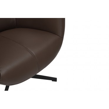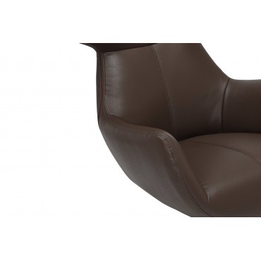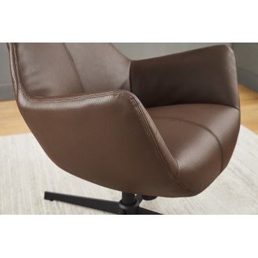 VOGUE to wygodny fotel obrotowy łączący elegancję z funkcjonalnością. Siedzisko pokryte brązową ekoskórą pięknie prezentuje się zarówno w nowoczesnych, jak i industrialnych wnętrzach. Czarne metalowe nogi podkreślają minimalistyczny charakter mebla, a mechanizm obrotu 360° zapewnia wygodę przy stole i biurku. Wysokie oparcie oraz podłokietniki odciążają plecy i barki – to idealny wybór na długie spotkania przy stole, pracę przy komputerze czy relaks z książką.