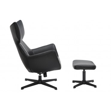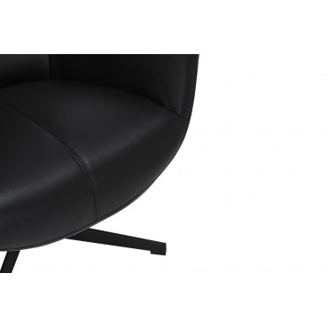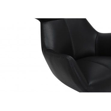 VOGUE to elegancki fotel obrotowy zaprojektowany z myślą o komforcie i uniwersalnym designie. Czarna ekoskóra nadaje mu wyrafinowany wygląd, a czarna metalowa podstawa podkreśla nowoczesny, industrialny klimat. Mechanizm obrotu 360° ułatwia codzienne użytkowanie, a funkcja pochylenia pozwala dopasować kąt oparcia do Twoich preferencji – idealnie do salonu, gabinetu czy strefy relaksu.