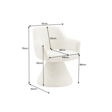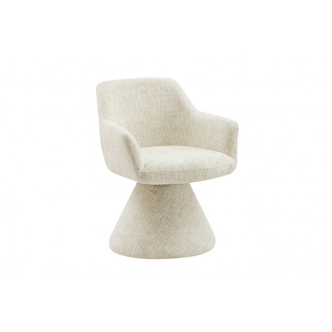 Elegancki i wygodny fotel obrotowy do jadalni lub salonu. Miękka tkanina chenille w kolorze beżowym, ergonomiczny kształt oraz funkcja auto-return (samoczynny powrót do pozycji wyjściowej po wstaniu) zapewniają komfort i porządek przy stole. Stabilna podstawa gwarantuje trwałość i bezpieczne użytkowanie na co dzień.