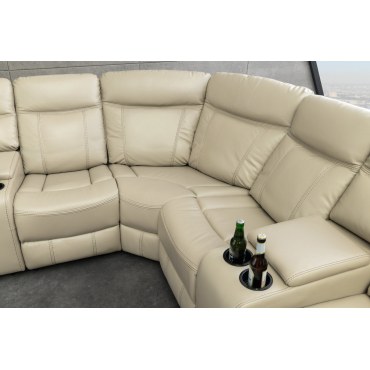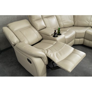 Przestronny fotel kinowy HOLLYWOD 5-osobowy to idealny mebel do domowego kina, salonu lub strefy relaksu. Tapicerka z beżowej sztucznej skóry zapewnia elegancki, nowoczesny wygląd i jest odporna na codzienne użytkowanie. Dzięki dużej liczbie siedzisk fotel oferuje komfortowe miejsce dla kilku osób podczas wspólnego oglądania filmów, seriali czy sportu.
