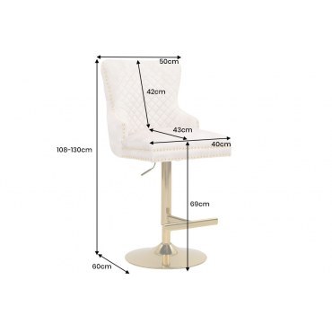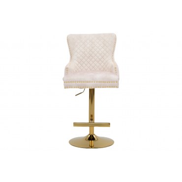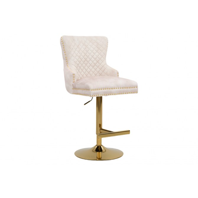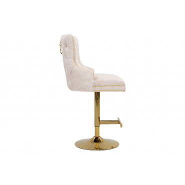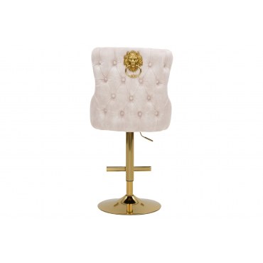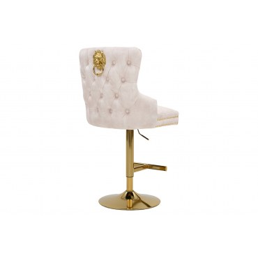 Wprowadź odrobinę luksusu do swojego wnętrza z hokierem Castle! Tapicerowany miękkim beżowym aksamitem, wyróżnia się eleganckim uchwytem w kształcie lwiego łba na oparciu, podkreślającym królewski styl. Stabilna podstawa z złotymi nogami oraz regulacja wysokości sprawiają, że jest nie tylko efektowny, ale i funkcjonalny — idealny do kuchennej wyspy czy domowego baru.
