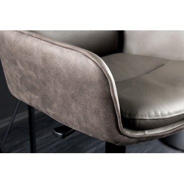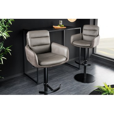 Stylowy, obrotowy hoker z regulacją wysokości i wygodnymi podłokietnikami.