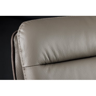 Eleganckie połączenie naturalnej skóry i mikrofazy w odcieniu taupe dodaje wnętrzu nowoczesnego wyrazu.