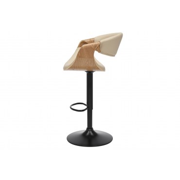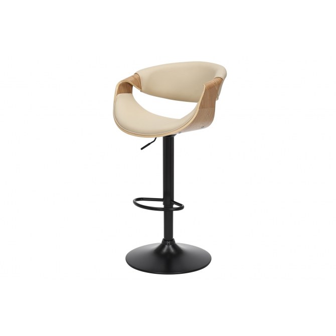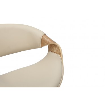 Hoker ORGANIC łączy wygodę fotela z funkcjonalnością krzesła barowego. Kubełkowe siedzisko z podłokietnikami, tapicerowane skórą ekologiczną w kolorze kremowego beżu, zestawiono z tyłem w drewnie dębowym (look). Regulacja wysokości i obrót 360° sprawiają, że to idealny wybór do wyspy kuchennej, baru i nowoczesnej jadalni.