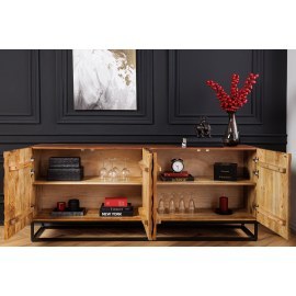 Komoda Sideboard VULCANO doskonale sprawdzi się w salonie, jadalni lub sypialni, wprowadzając do wnętrza odrobinę naturalnego ciepła i artystycznej elegancji. To wyjątkowy mebel, który stanie się ozdobą każdego pomieszczenia.