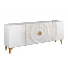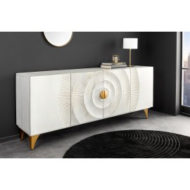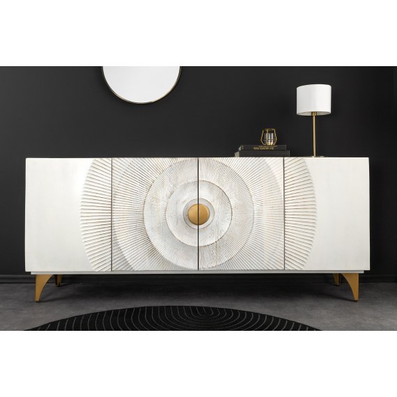 Komoda Golden Sunset świetnie sprawdzi się w salonie, sypialni, jadalni czy biurze. Dzięki jasnej kolorystyce i złotym akcentom pasuje zarówno do wnętrz glamour, jak i nowoczesnych aranżacji z nutą klasyki.