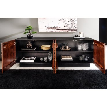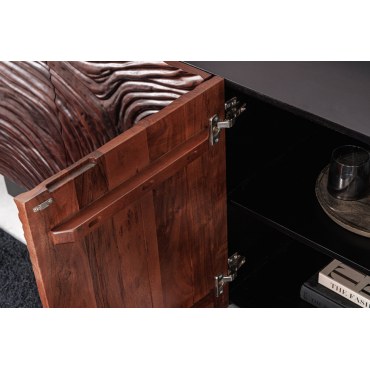 Komoda SIDEBOARD FLUID 175 cm – drewno akacjowe, czarne i ciemny orzech brązowy