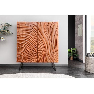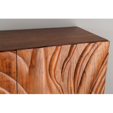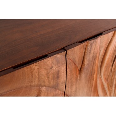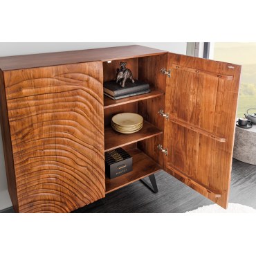 Witryna HIGHBOARD FLUID to elegancki mebel, który łączy nowoczesny design z funkcjonalnością. Dzięki unikalnemu wykończeniu w kolorze orzechowego brązu oraz frontom o efekcie 3D, mebel ten stanowi doskonały wybór do współczesnych wnętrz, wnosząc do nich ciepły, ale jednocześnie elegancki klimat. Wykonana z drewna akacjowego, które charakteryzuje się trwałością i odpornością na uszkodzenia, HIGHBOARD FLUID to idealna opcja do przechowywania zarówno dekoracji, jak i codziennych przedmiotów.