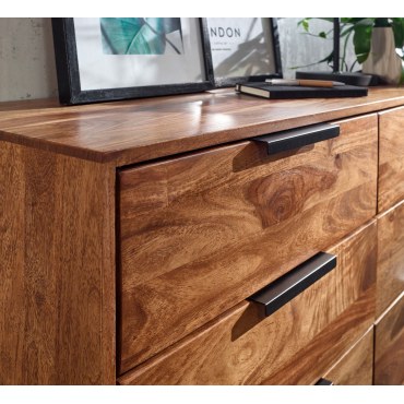 Nowoczesna komoda o wyjątkowym charakterze, wykonana z litego drewna Sheesham, zachwyca naturalną strukturą drewna oraz solidną konstrukcją na metalowym stelażu. Idealna do salonu, kuchni czy przedpokoju.