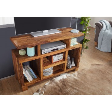 Ta wyjątkowa komoda to doskonałe połączenie naturalnego uroku drewna sheesham z praktycznym układem schowków. Może pełnić funkcję klasycznego sideboardu lub nowoczesnego stolika RTV. Ręczne wykonanie oraz unikalna struktura drewna sprawiają, że każdy egzemplarz jest jedyny w swoim rodzaju.