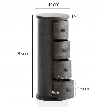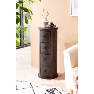 Kompaktowa komoda WOHNLING z czarnego drewna mango to idealny wybór dla osób, które cenią sobie wysoką jakość, ręczne wykonanie i funkcjonalność. Cztery szuflady oferują praktyczne miejsce na przechowywanie, a elegancki wygląd nada wnętrzu stylowego charakteru.