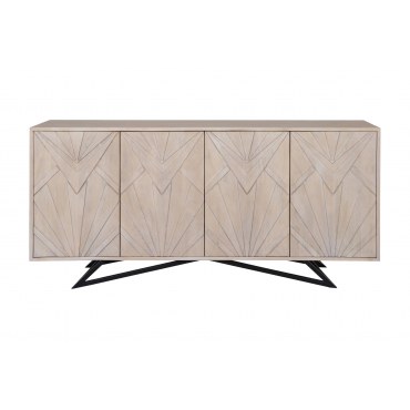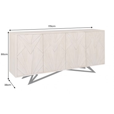 Nowoczesne i stylowe sideboard METROPOLITAN 170 cm w white wash wykończeniu – fronty z trwałego drewna mango wood, korpus z MDF i czarne metalowe stelaże. Model wyposażony w trzy drzwi i zaprojektowany z myślą o minimalistycznych i rustykalnych aranżacjach wnętrz. Głębokość 38 cm pozwala na ustawienie w wąskich pomieszczeniach, zachowując elegancki wygląd i praktyczną funkcjonalność.
