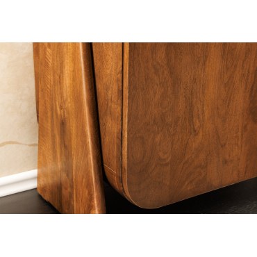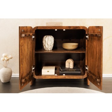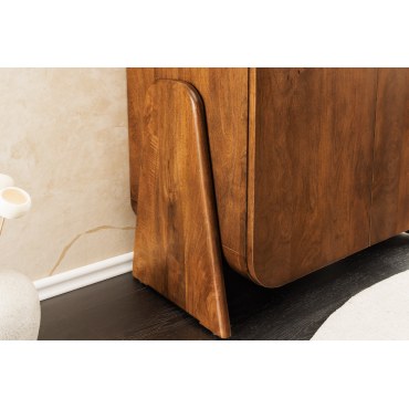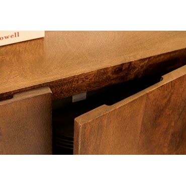 Kompaktowy lowboard z kolekcji BRASIL łączy naturalne drewno mango o miodowo-brązowym wybarwieniu z minimalistyczną bryłą inspirowaną stylem industrialnym. Idealny jako szafka pod mniejszy telewizor, konsolę lub jako niska komoda w przedpokoju i sypialni. Naturalne usłojenie i ręczne wykończenie sprawiają, że każdy egzemplarz jest niepowtarzalny.