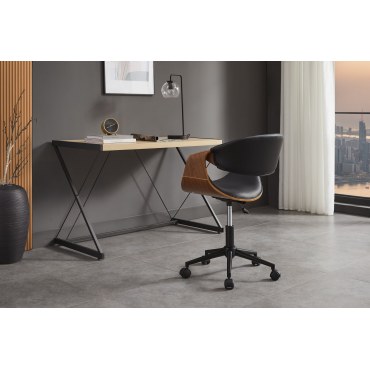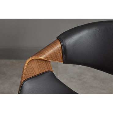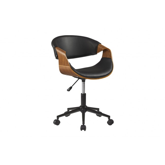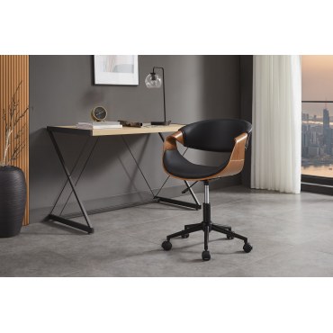 Eleganckie i wygodne krzesło biurowe Organic to idealne połączenie nowoczesnego designu z komfortem codziennej pracy. Tapicerka z czarnej ekoskóry w zestawieniu z elementami w kolorze drewna orzechowego nadaje krzesłu stylowy, profesjonalny wygląd, który doskonale sprawdzi się w biurze, gabinecie lub domowym miejscu pracy.