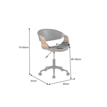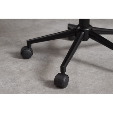 Krzesło jest obrotowe, posiada regulację wysokości siedziska oraz ergonomicznie wyprofilowane oparcie, zapewniając wygodę nawet podczas długiego siedzenia.