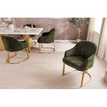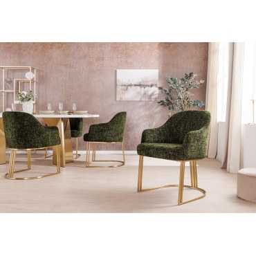 Fotel Extravagancia w kolorze zielonym to wyjątkowy wybór dla osób ceniących luksus i elegancję. Tapicerka z tkaniny chenille w intensywnym odcieniu zieleni w połączeniu z metalową ramą w kolorze szampańskiego złota tworzy niepowtarzalny efekt. Ten fotel wnosi do każdego wnętrza wyrafinowaną atmosferę.