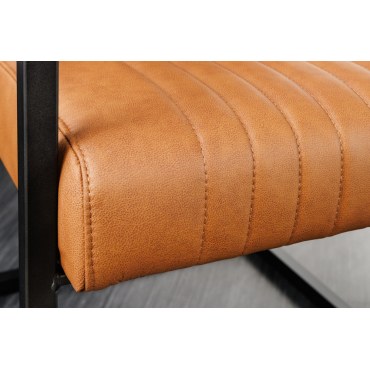 Styl i wygoda w jednym. BIG ASTON to nowoczesne krzesło typu freischwinger z eleganckimi, czarnymi metalowymi nogami i tapicerką z naturalnej skóry w odcieniu koniak vintage. Sprężysty korpus, wygodne podłokietniki i solidna konstrukcja sprawiają, że model świetnie sprawdzi się przy jadalnianym stole, w biurze lub sali konferencyjnej.