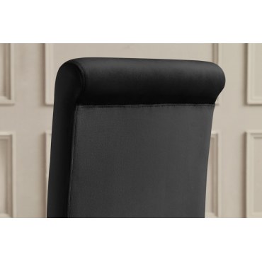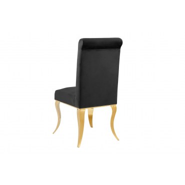 Eleganckie krzesło w stylu modern barock, które łączy luksusowy wygląd z nowoczesnym designem. Miękkie, czarne siedzisko z weluru pięknie kontrastuje ze złotą, błyszczącą podstawą ze stali nierdzewnej. To idealny wybór do jadalni, salonu, restauracji czy eleganckiego biura – wszędzie tam, gdzie chcesz dodać wnętrzu odrobiny glamour.