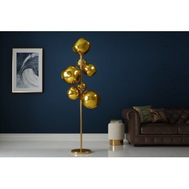 Lampa podłogowa LIQUID DIAMOND o wysokości 170 cm to wyjątkowy element dekoracyjny, który łączy elegancję i nowoczesność. Jej smukła, złota konstrukcja oraz siedem szklanych kloszy o różnych rozmiarach tworzą efektowną kompozycję świetlną, przyciągającą wzrok i nadającą wnętrzu luksusowego charakteru.
