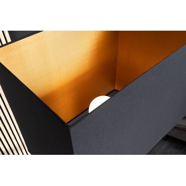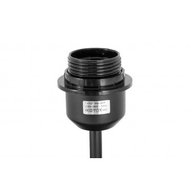 Czarny, tekstylny abażur harmonijnie dopełnia całość, zapewniając przyjemne, rozproszone światło. Solidna, metalowa podstawa w kolorze czarnym gwarantuje stabilność i trwałość konstrukcji.