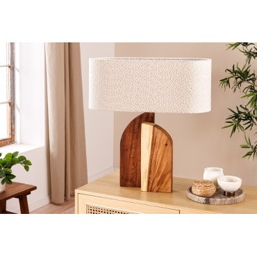 Lampa stołowa Lovers 60 cm to połączenie naturalnego uroku drewna z subtelnym, teksturowanym abażurem. Jej podstawa z naturalnego drewna raintree wprowadza do wnętrza ciepło i autentyczność, podczas gdy biały abażur bouclé delikatnie rozprasza światło, tworząc przytulną atmosferę. Idealna do salonu, sypialni czy biura, lampa ta łączy funkcjonalność z estetyką, wpisując się w styl boho, skandynawski czy naturalny.