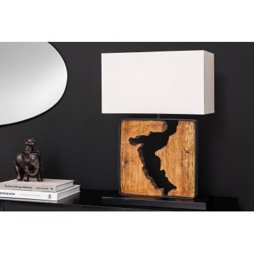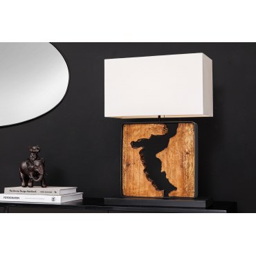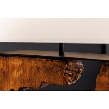Ręcznie wykonana lampa stołowa z naturalnego drewna deszczowego (raintree wood) i czarnego metalu to wyjątkowy dodatek do każdego wnętrza. Jej charakterystyczny wygląd inspirowany naturą sprawia, że każda sztuka jest unikatowa.