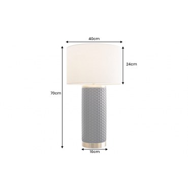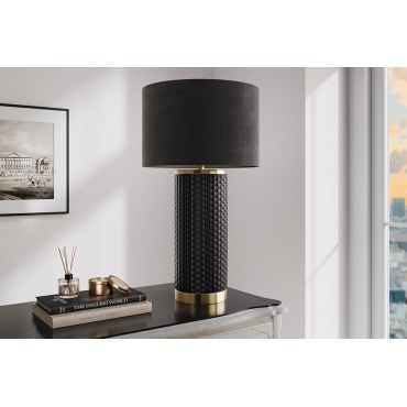 Elegancka lampa stołowa o wysokości 70 cm, ze stylową, ceramiczną podstawą w czerni ze złotymi akcentami. Klasyczna forma łączona z nowoczesnym designem sprawia, że lampa przyciąga wzrok i wprowadza luksusowy charakter do wnętrza.