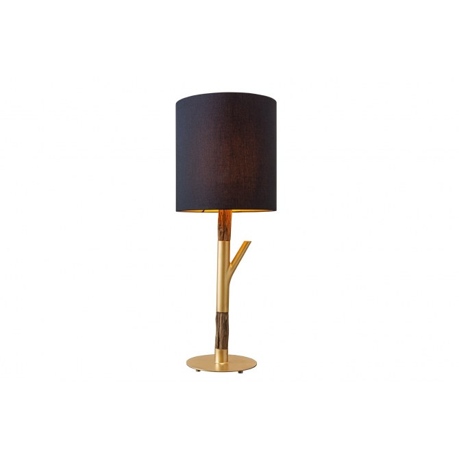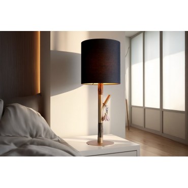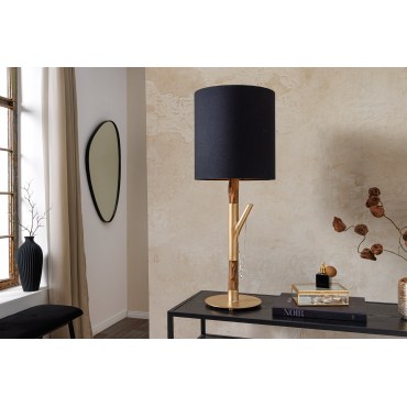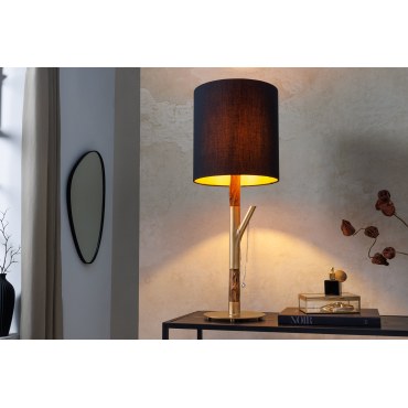 Luxusowa lampa stołowa o wysokości 74 cm, z naturalno‑złotym stelażem i eleganckim, klasycznym abażurem zewnętrznie czarnym i wewnętrznie białym. Idealna do wnętrz o nowoczesnym charakterze, dodaje szyku i optycznej lekkości.