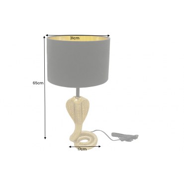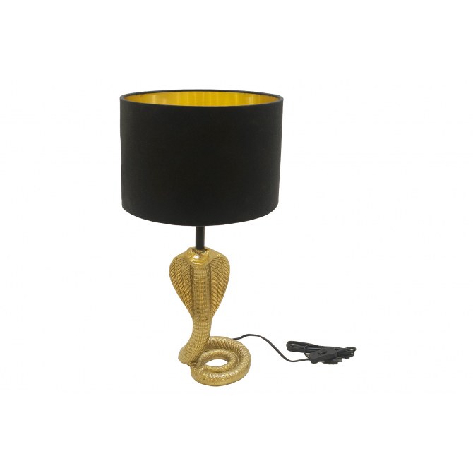 Elegancka i designerska lampa stołowa Cobra 65 cm to idealny dodatek do salonu, sypialni, biurka czy strefy wypoczynkowej. Połączenie klasycznego, czarnego abażuru z efektowną złotą ramą podkreśla nowoczesny charakter wnętrza, a ciepłe światło tworzy przytulną atmosferę. Lampa nie tylko oświetla przestrzeń, lecz także stanowi dekoracyjny element wyposażenia.