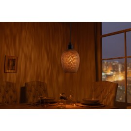 Lampa wisząca ORGANIC LIVING to kompaktowe i stylowe oświetlenie, które łączy naturalne materiały z minimalistycznym designem. Wykonana z ręcznie plecionego bambusa, wprowadza do wnętrza ciepło, przytulność i organiczny charakter.