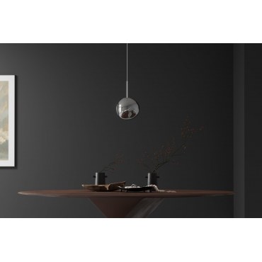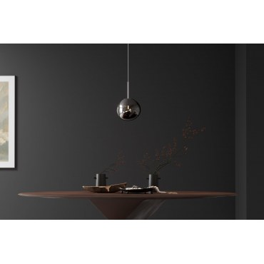 Stylowa lampa wisząca LIQUID DIAMOND o średnicy 20 cm to nowoczesne i eleganckie oświetlenie wykonane z wysokiej jakości szkła w modnym dymionym wykończeniu. Jej designerski klosz przypominający diament zachwyca subtelną formą i pięknie rozprasza światło, tworząc przyjemną atmosferę w pomieszczeniu.