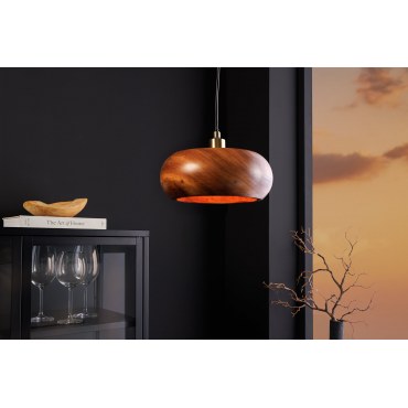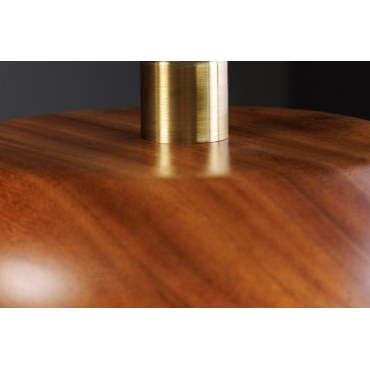 Elegancka lampa sufitowa łącząca naturalne drewno akacjowe z subtelnym złotym wykończeniem metalu. Minimalistyczna forma i ciepła kolorystyka pasują do nowoczesnych, loftowych i skandynawskich wnętrz. Idealna nad stół, wyspę kuchenną lub do salonu.