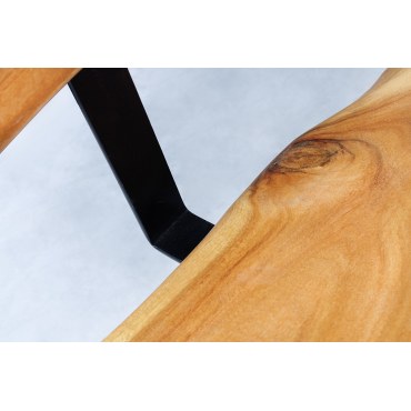 • Blat i oparcie: Lite drewno akacjowe o grubości 40 mm z pięknym miodowym wykończeniem, które eksponuje naturalne słoje drewna