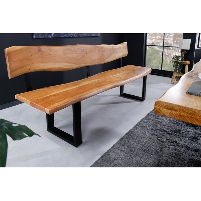 Ławka MAMMUT o długości 200 cm to połączenie wytrzymałości, naturalnego uroku i funkcjonalności. Wykonana z litego drewna akacjowego z miodowym wykończeniem oraz solidną metalową podstawą w kształcie litery „U”, doskonale sprawdzi się zarówno w jadalni, salonie, jak i na tarasie. Wygodne oparcie zapewnia dodatkowy komfort użytkowania.