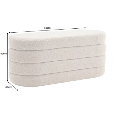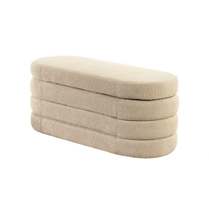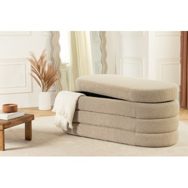 Stylowa i funkcjonalna — oto ławka VOQUE o długości 115 cm, tapicerowana miękkim bouclé w odcieniu taupe, z dodatkową przestrzenią do przechowywania. Idealna na przedpokój, do garderoby czy jako dodatkowe siedzisko w salonie.