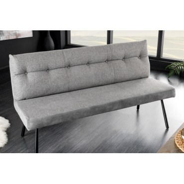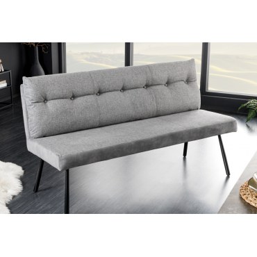 Elegancka ławka do jadalni lub przedpokoju z kolekcji BIG GEORGE. Miękkie, welurowe siedzisko łączy się z odporną tkaniną płócienną (flat-woven) na oparciu. Stabilna, metalowa podstawa i wygodne podłokietniki zapewniają komfort 2–3 osobom.