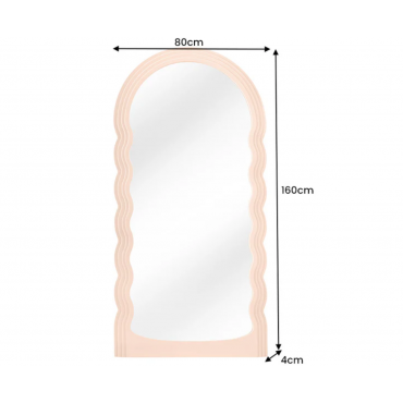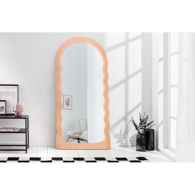 Lustro WAVE o wysokości 160 cm to oryginalny dodatek, który wyróżnia się falistym kształtem i delikatnym brzoskwiniowym odcieniem. To idealny wybór do wnętrz, które potrzebują subtelnego, ale jednocześnie stylowego akcentu. Lustro pasuje zarówno do salonu, sypialni, jak i przedpokoju, doskonale łącząc funkcjonalność z estetyką.